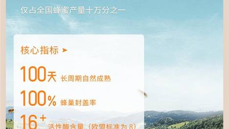 根据《长熟蜜白皮书》记载,长熟蜜采用原生态、继箱体、多矩阵的立体蜂箱创新养殖方法;在环保的环境中,蜜蜂通过扇动翅膀除湿去水分后,将蜂巢用蜂蜡密封,经过100天以上的长周期自然成熟的高活性好蜂蜜。凤语山谷长熟蜜…