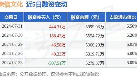 荣信文化:7月31日融资净买入444.31万元,连续3日累计净买入679.33万元