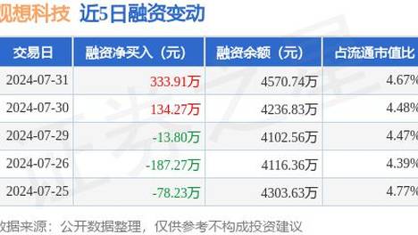 观想科技:7月31日融资买入1674.52万元,融资融券余额4584.34万元