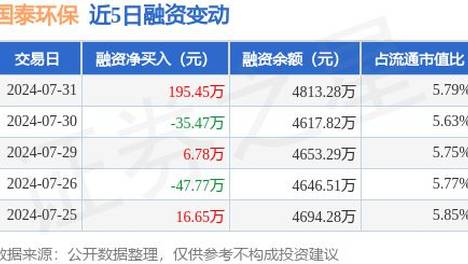 国泰环保:7月31日融资买入239.96万元,融资融券余额4827.46万元