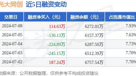 光大同创:7月8日融资买入301.68万元,融资融券余额6278.43万元