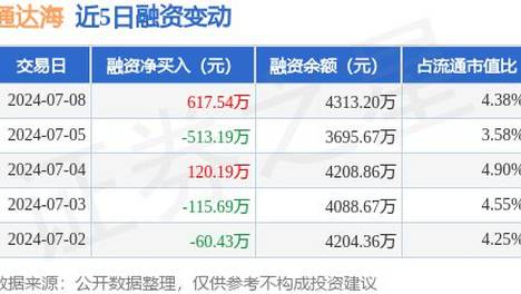 通达海(301378)融资买入1337.96万元,融资偿还720.42万元,融资净买入617.54万元,融资余额4313.2万元,近20个交易日中有12个交易日出现融资净买入。融券方面,当日融券卖出600.0…
