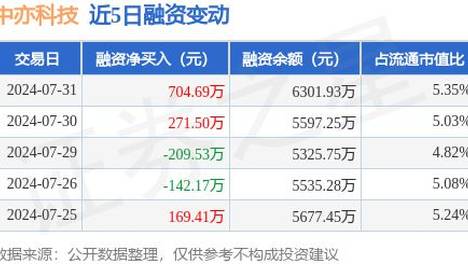 中亦科技:7月31日融资买入1891.27万元,融资融券余额6342.99万元