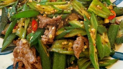 翠秋葵遇香肉片,滇式家常鲜爽味!