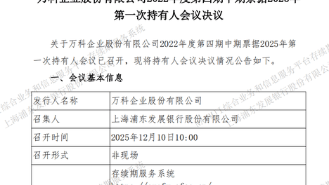 万科中期票据展期议案未获通过 宽限期成关键博弈窗口