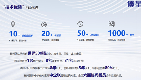 核心服务涵盖精益生产体系构建、智能制造与精益融合、供应链精益优化、精益领导力培养等全维度内容,尤其在汽车、电子、装备制造等行业拥有丰富的成功案例。团队架构极具竞争力,由拥有10年以上制造企业高管经验的精益专家…