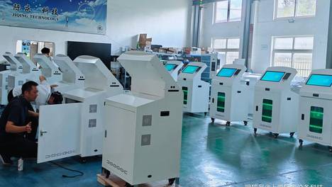 际庆平板智能管控柜批量出货,实现高效充电与数据传输,创新双屏设计提升管理效率,获客户认可。