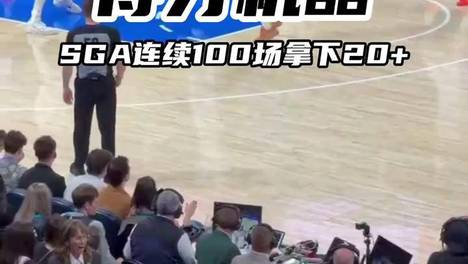 【现场直击:SGA连续100场20+】得分机器!在今日对阵灰熊的末节比赛中,SGA在命中一记中投后得到本场第21分,达成连续100场比赛得到20+得分成就!#灰熊vs雷霆 #亚历山大