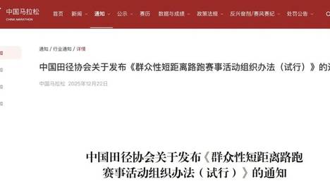 为进一步推动路跑运动安全、规范、普及发展,满足人民群众多样化健身需求,中国田径协会于12月22日发布《群众性短距离路跑赛事活动组织办法(试行)》(以下简称《办法》),旨在引导和规范群众性短距离路跑赛事活动的组…