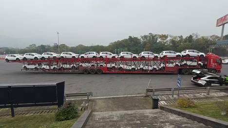 近日,重庆市交通执法总队高速公路第五支队在G5013渝蓉高速科学城收费站查获一起严重超限违法行为。一辆车货总长42.8米的车辆运输车超出国家规定限值20.8米,当场被执法人员依法查处。涉事车辆严重超限(重庆市…