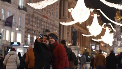 临近新年,维也纳主要商业街洋溢着节日氛围。↑12月22日,人们在奥地利维也纳自拍留念。↑12月22日,人们在奥地利维也纳拍摄彩灯。↑这是12月22日在奥地利维也纳街头拍摄的彩灯。新华社记者贺灿铃摄…