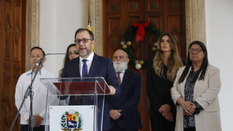 新华社照片,加拉加斯,2025年12月22日12月22日,在委内瑞拉首都加拉加斯,委内瑞拉外长希尔(前)在该国外交部宣读马杜罗向拉美和加勒比地区国家元首所致公开信。委内瑞拉总统马杜罗22日向拉美和加勒比地区国…