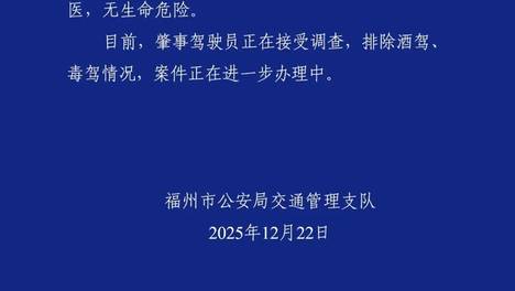 央广网福州12月22日消息(记者罗晓英)12月22日,福建福州仓山区亭头路发生交通事故。目击者称,一辆轿车逆行撞倒多人。12月22日晚,福州市公安局交通管理支队发布警情通报:12月22日10时28分许,葛某(…