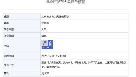 北京市发布大风蓝色预警
