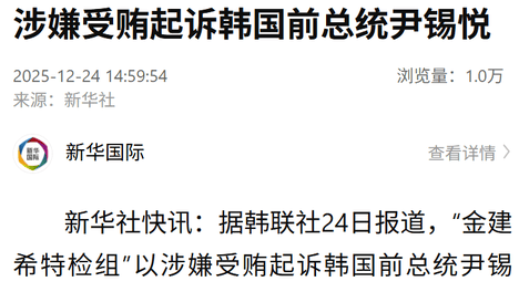 此外,据CCTV国际时讯消息,负责调查韩国前总统尹锡悦夫人金建希所涉多项嫌疑的特检组12月3日向法院要求判处金建希15年刑期。据央视新闻消息:韩国前总统尹锡悦夫人金建希9月24日下午来到首尔中央地方法院,出席…
