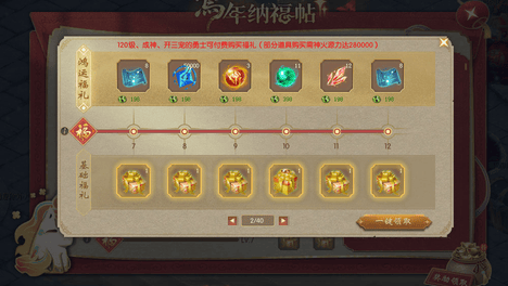 新春佳肴:每天去卡诺萨城餐桌领新春佳肴,吃了就给100级神火碎焰【绑】、幻化好礼包【绑】等奖励,轻松不累。总的来看,《魔域》这波春节活动确实是福利大放送,从高端养成材料到限定外观,从日常省时道具到竞拍稀有珍品…
