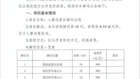 关于八寨沟景区摊位招租公告