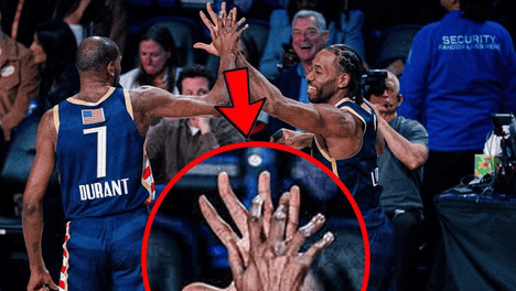 北京时间2月17日,美媒CourtsideBuzz晒出了一张全明星赛的击掌图,并配文写道:“科怀-莱昂纳德和凯文-杜兰特的手掌大小对比简直太惊人了——科怀的手看起来是杜兰特手掌的两倍大。此前,有美媒晒出了小卡…