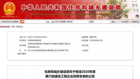 2020年度第6批:15家建企获特级资质!上海3家甲乙级。