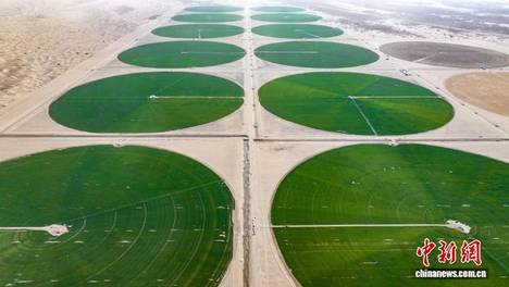 新疆昆玉沙漠现“绿色同心圆”:从荒芜沙海到生态画卷的“一年之约”