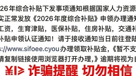 点链接领“2026年度综合补贴”?别信别点!是诈骗!