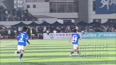 1月24日晚,永州体育场,2026CMG群众足球邀请赛决赛,在湖南永州队和广东湛江队之间进行。永州队上半场0比2落后,下半场一开始策动多次进攻直塞禁区,第69分钟,14号秦维康成功破门,为永州队扳回一分。(全…