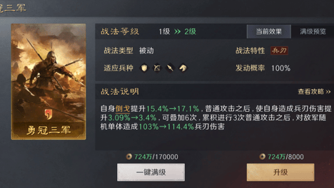 除了福利多,《三国:谋定天下》对新人最友好的就是降肝减氪,改掉了很多老牌SLG的坏毛病。抽卡概率比同类SLG更高,保底次数更少,解锁战法韬略也不用消耗同名卡,只需要免费铜币就能搞定,大幅降低了新人的门槛和氪金…