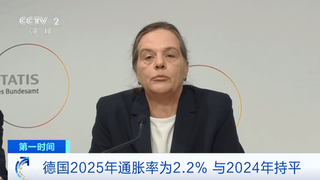 (央视财经《第一时间》)当地时间16日,德国联邦统计局公布的数据显示,2025年德国通货膨胀率为2.2%,与2024年持平。去除能源和食品价格因素后,2025年德国核心通胀率为2.8%。德国联邦统计局局长鲁特…