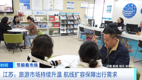 (央视财经《第一时间》)随着春节临近,旅游市场持续升温。在江苏,记者了解到,2026年春节无论是国内游还是出境游,很多旅游产品的预订销售情况和往年相比都有较大增长,特别是长线游受到不少消费者青睐。上午十点,南…