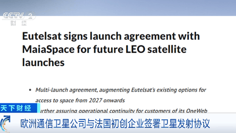 (央视财经《天下财经》)当地时间16日,欧洲通信卫星公司宣布,已与法国航天初创企业玛雅航天签署协议,委托其负责低地球轨道卫星的发射任务。此举也将助力欧洲通信卫星公司加快追赶竞争对手SpaceX的脚步。欧洲通信…