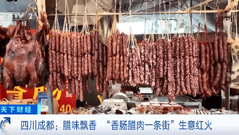 (央视财经《天下财经》)四川成都的新开寺街被称为“香肠腊肉一条街”,这段时间,当地的商铺迎来销售旺季,为了迎接佳节,不少商家还推出椒味、藤椒等口味香肠,吸引不少市民前来置办年货。在四川人的年货清单中,香肠、腊…