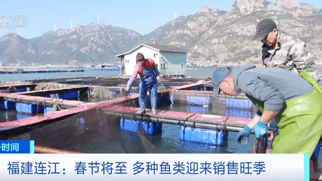 (央视财经《第一时间》)春节临近,福建福州市连江县海上养殖的大黄鱼、石斑鱼等多种鱼类迎来丰收,养殖户们正抓紧捕捞,供应节前市场。在福建省连江县安凯乡沙澳湾海域,养殖渔排错落有致地铺在海面上,下午1点多,多名养…