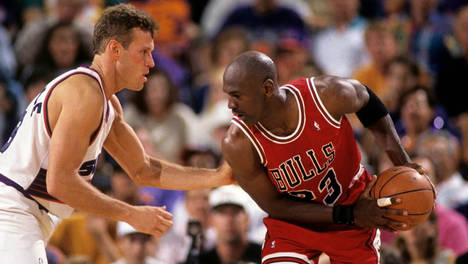 他强调,如果将乔丹放到控球后卫的位置,结合1988-89赛季乔丹实际打控卫时的数据——场均32.5分、8个篮板和8次助攻,命中率高达53.8%,再加上现代篮球对三分球的高度重视和训练,他的表现将更加耀眼。两代…
