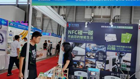 CIAIE 2025展会上,联合智能展示NFC汽车卡、充电桩卡、墨水屏标签及证件牌等智能产品,推动汽车行业的智能化、高效化发展。