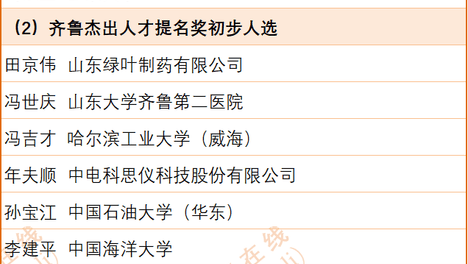 第三届齐鲁杰出人才奖及提名奖初步人选公示