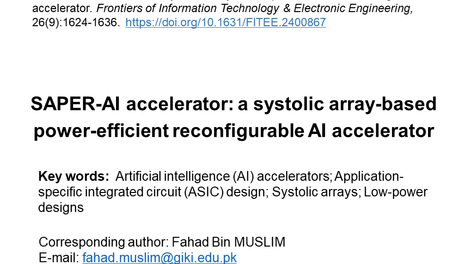 SAPER-AI加速器:一种基于脉动阵列的低能耗可重构人工智能加速器丨FITEE