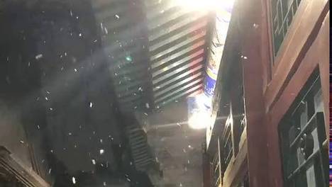 北京雪花飞舞中,可爱的小女孩在雪地里玩耍