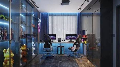 我是一个特别喜欢玩游戏的人,从小就希望能有一间专属的游戏房,长大之后,终于能自己装修房子了,就打算设计一个电竞房,这下我终于实现了,不过流行的两种设计,我果断选了第一种,看到效果的那一刻,这种感觉太爽了!