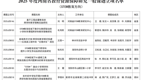 多项STEM教育课题入选2025年度河南省教育资源保障研究一般课题立项名单