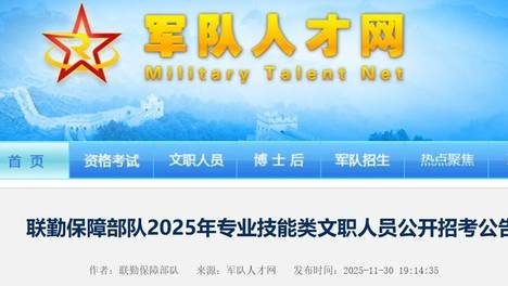 报考人员根据公布的招考信息,可以在2025年12月1日8:00至12月7日18:00,登录军队人才网“2025年公开招考专业技能岗位文职人员报名系统”(),按照报名流程及要求,如实填报个人信息和上传相关证明材…
