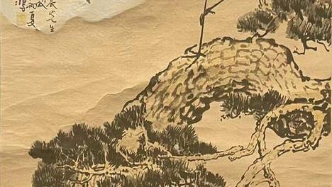 画面上部的松枝枝干挺劲,以干笔淡墨写出,枝杈如鹿角,枝多叶稀,一派荒寒枯老之态。鹤的描绘上,鹤身大面积留白,仅鹤颈、鹤尾、鹤腿以阔笔浓墨写成,鹤身以干笔极淡的墨色略加勾点,以显示出鹤羽蓬松的质感,鹤首描绘较为…