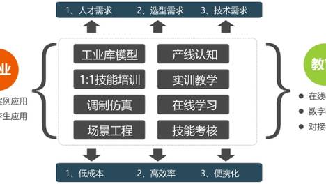 通过数字孪生仿真技术,能够将行业的典型示范性工厂,半实物虚拟化,并结合虚实仿真技术,保留其原有的控制系统以及机电系统,将企业需求的控制,编程应用人才与校内实训课程结合,实际解决,学生实训过程中无示范…