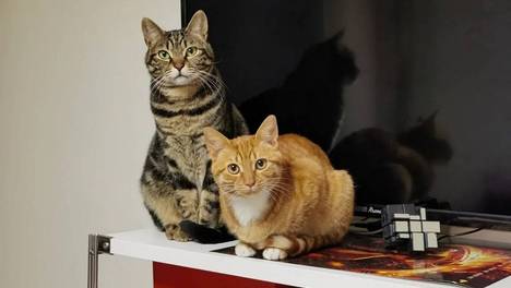 聪明狸花会按零食机,懒橘猫只负责抢,一个愿按一个愿等