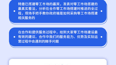 实现供求信息、劳动关系、社保参保、薪资支付、劳动保障平台化,如小爱为海宁市政府打造的“零工市场”,不仅满足了海宁当地零工人员就业,还可以让政府和个人在平台上实现从发包、派/抢单、用工协议签署、结单审核、结算等…