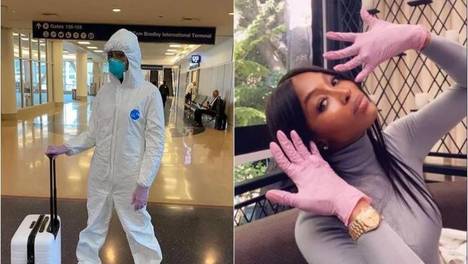 穿着防护服上飞机,娜奥米·坎贝尔堪称“超模抗疫第一人”