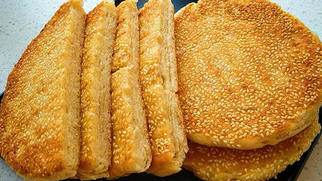香酥芝麻大饼,半碗芝麻,一碗面粉,不用烤箱,4张饼够全家吃