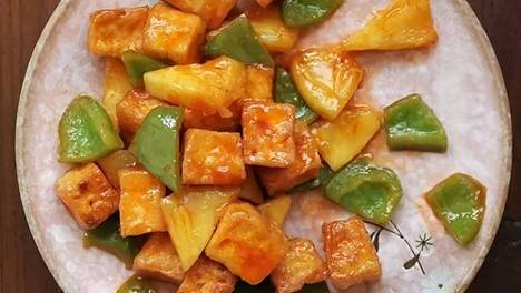 菠萝别只当水果吃,搭配豆腐做成菜,几分钟出锅,酸甜解腻超下饭