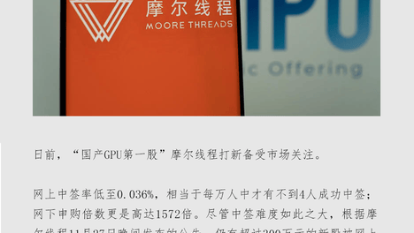 中一签狂赚28万!摩尔线程开盘暴涨468%,机构疯抢的中国版英伟达有多顶?