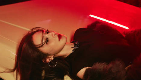 赵昭仪穿紫色丝绒裙神态冷峻 侧身回眸气场酷飒神秘