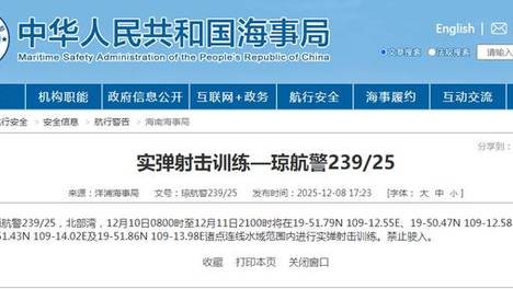 政知见2025-12-0916:43:23编辑|高语阳中国海事局网站消息,洋浦海事局发布航行警告,12月10日8时至12月11日21时,北部湾部分水域进行实弹射击训练,禁止驶入。…